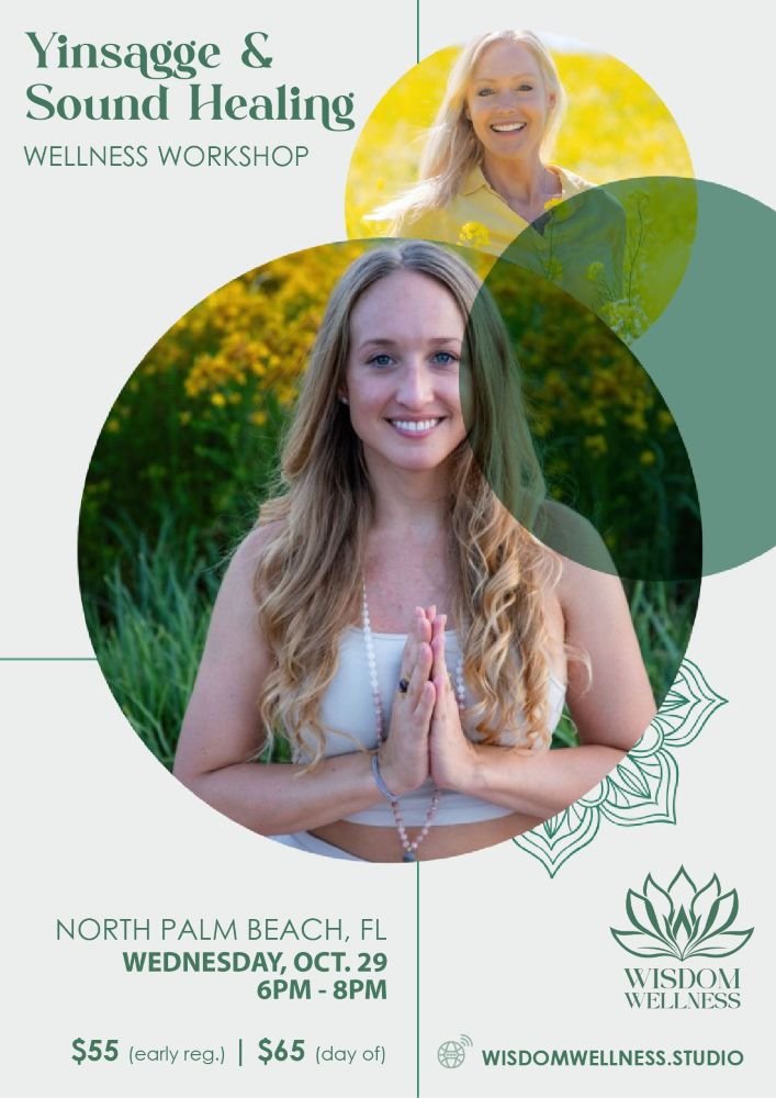 Join us for a morning of serenity and renewal as Wisdom Wellness hosts a deeply restorative Yinsagge & Sound Healing Workshop on Wednesday, October 29th from 6–8pm.